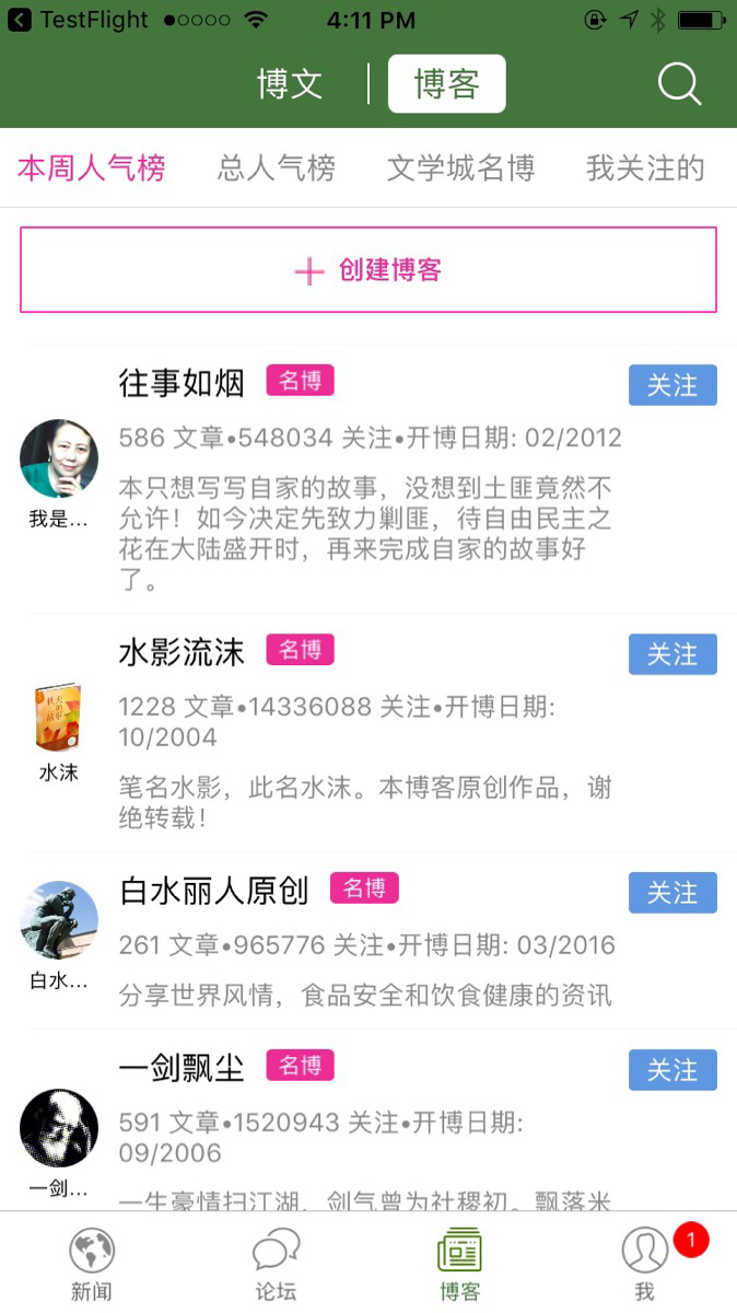 2、博客频道: