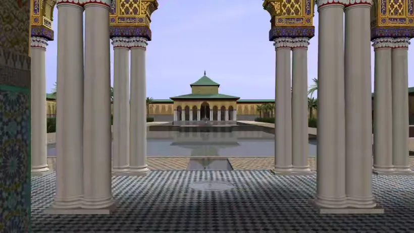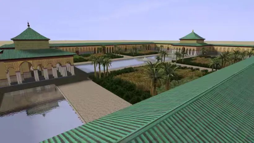 这是后世考古学家经过挖掘和研究,绘出的巴迪皇宫复原图。全盛时期的巴迪皇宫是一座将极致奢华与伊斯兰建筑美学完美融合的艺术殿堂。宫殿以成千上万块精美的彩色马赛克地砖铺地,高耸的墙面上覆盖着贴有真金金箔的石膏,天花板则由精细雕琢的雪松木交错而成。