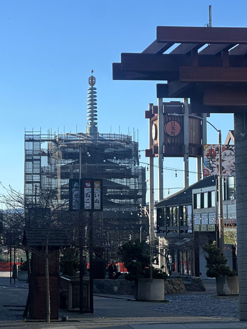 日本城的和平塔正在维护之中。