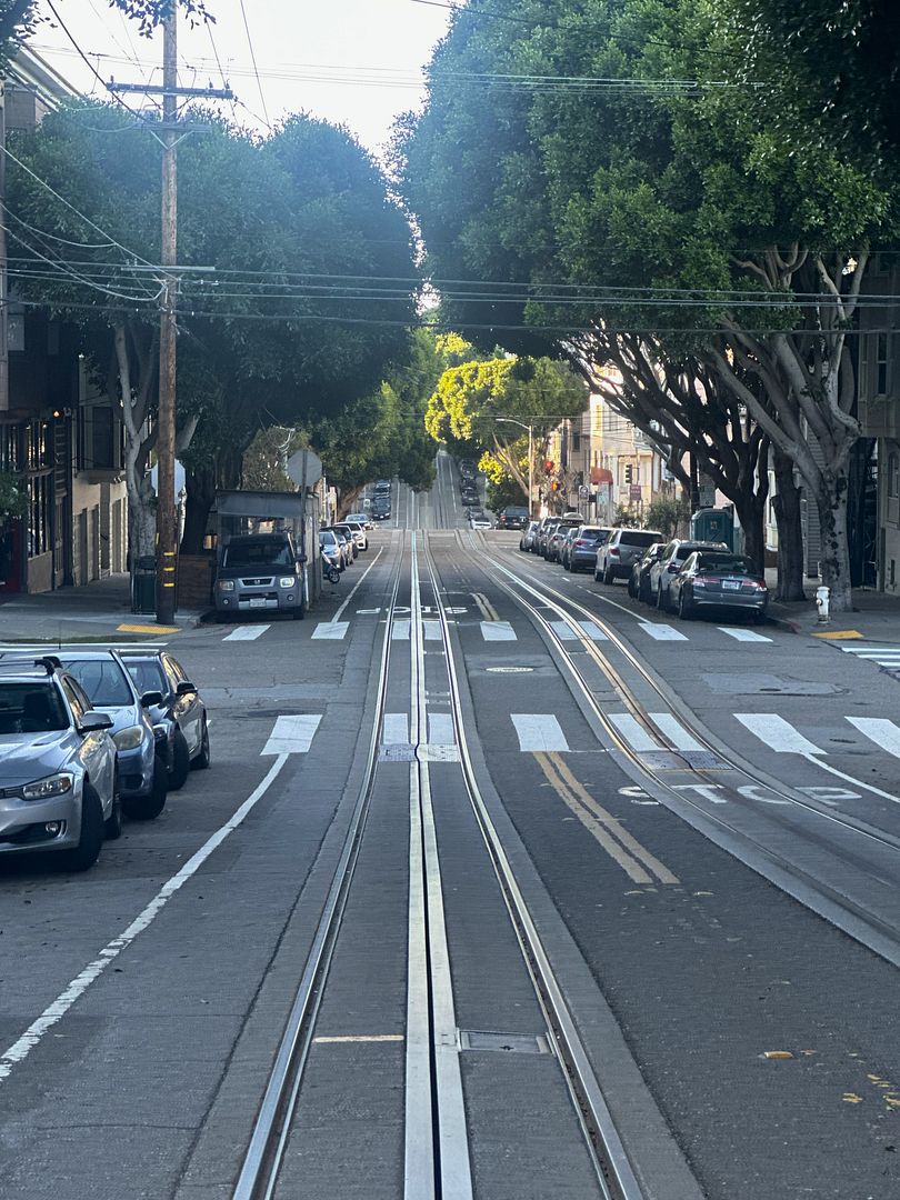 加利福尼亚大街上叮当车轨道。
