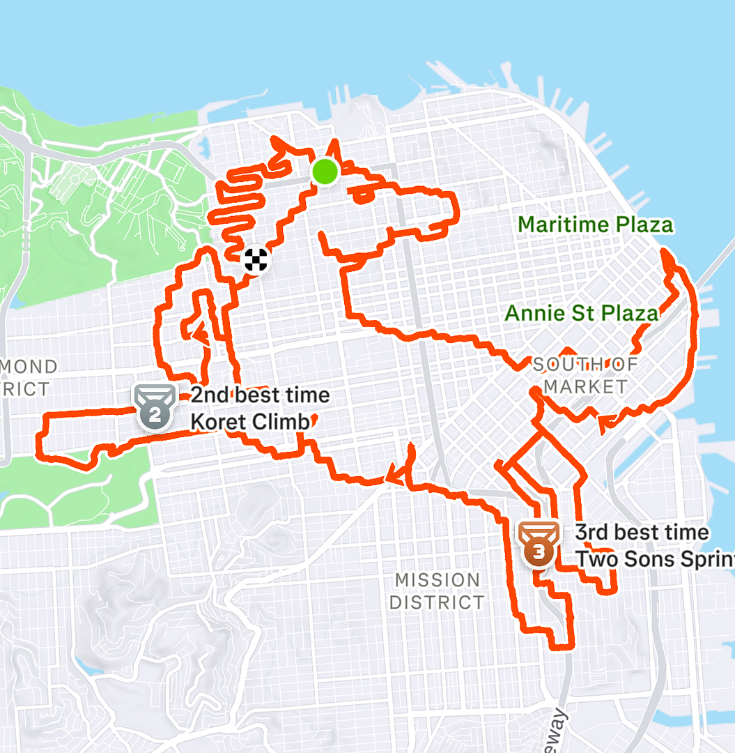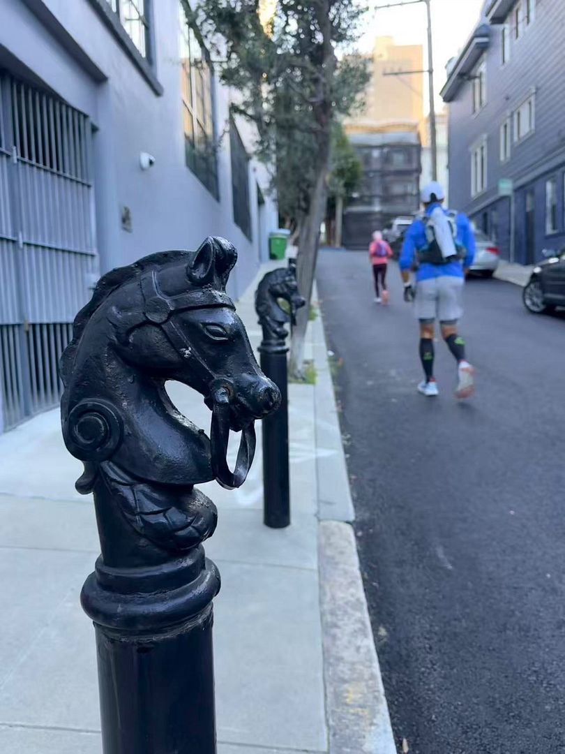 马年莅临,旧金山的那位跑步大神Lenny不负众望地推出了最新版的跑步轨迹:一匹回望中的奔马。于是,麦哥就牵头搞了一场旧金山街头慢跑,路线轨迹,大致照抄了Lenny的作业。