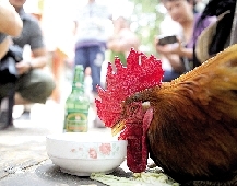 祖先生对这只公鸡十分感兴趣,围着它看个没完。附近商铺的人说:你也看上这只鸡了?这可不是一般的鸡,有好多能耐呢!有人出300元想买走它,主人都不卖!
