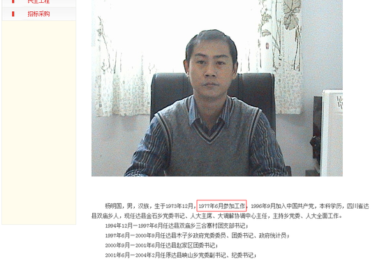 1994年12月—1997年6月任达县双庙乡三合寨村团支部书记;