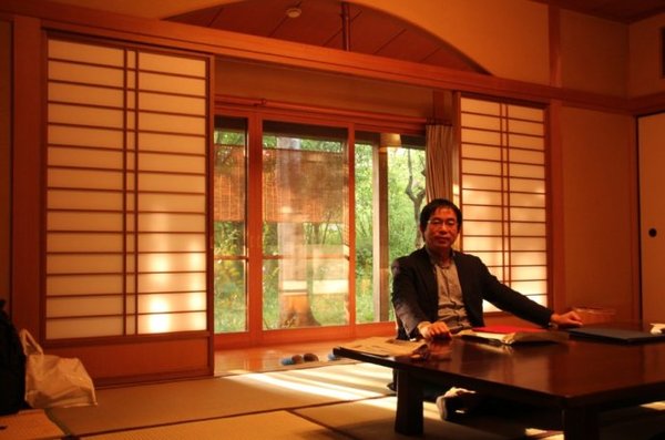 经过路人的指点,汽车开到一处绿树林前,却没有见到“玉之汤”温泉旅馆的招牌。正在纳闷间,从边上的林道里,跑过来两人,一人来扛行李,一人把我们的车开往了停车唱—没有错,这里就是掩映于枫竹林中的“玉之汤”温泉旅馆。
