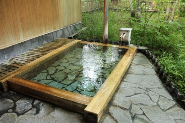 配有2个宽大的洗手间,还更衣室,以及洗面间。当然,最吸引人的,还是露天温泉。跑完澡,可以在室外茶叙处听林间的鸟儿名叫。据悉,旅馆的树林里,有24种鸟儿。每天早晨,不是闹钟把你吵醒,而是鸟儿的欢叫声,把你唤醒。