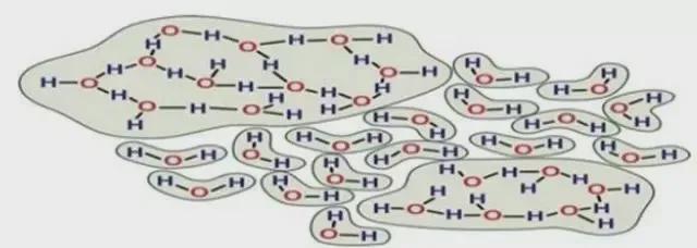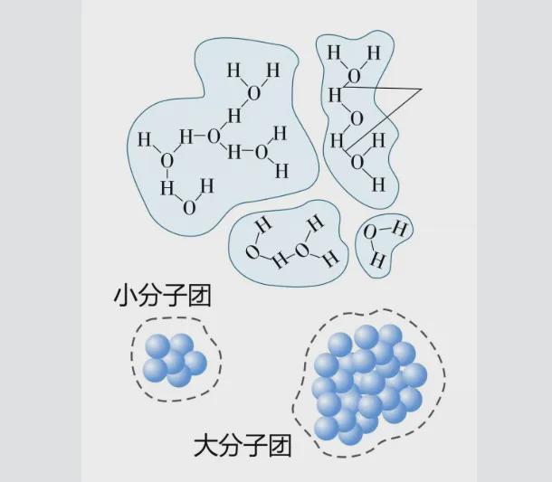什么叫小分子水呢?按照推广视频里面的说法,普通的水,往往是由15到20个水分子,通过氢键作用聚合在一起而形成的分子团簇,这种形态被称为大分子团水。在某些情况下,连接力较弱的氢键将会被切断,使分子团簇散架,变成更小的水分子团,只有5到6个分子组队,具有更高的活性,更容易穿透细胞膜,从而带来各种“健康益处”。