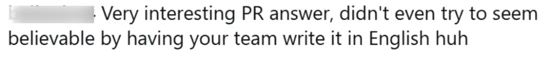 “很有趣的公关套路回复,团队甚至只用芬兰语,没有用英语写出来,演都不演了。”