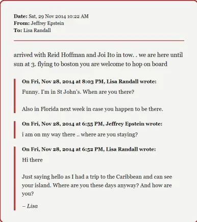 年,她甚至搭乘爱泼斯坦的私人飞机从加勒比海返回波士顿,邮件中轻松询问对方旅行近况,还讨论航班安排。那时已经是爱泼斯坦 2008