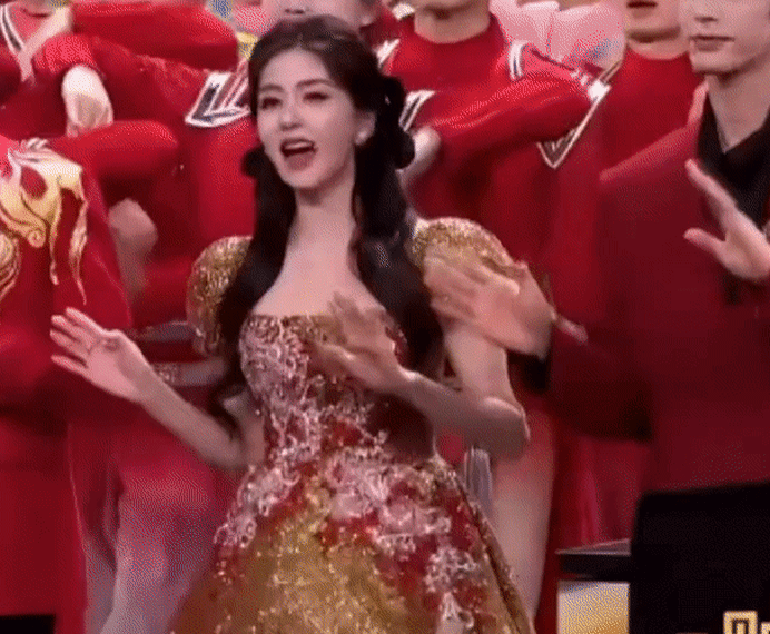 在8人合唱的《串门指南》节目中,她的金红相间小礼裙利落且不失隆重感,俏皮而明艳,只一眼就能被看到,绝对是节目中的焦点。