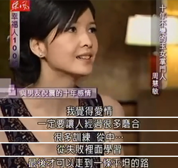 2008年结婚前夕,老公被拍到夜店索吻女大的巨大丑闻,周慧敏硬是顶着压力宣布原谅,甚至开开心心下嫁。