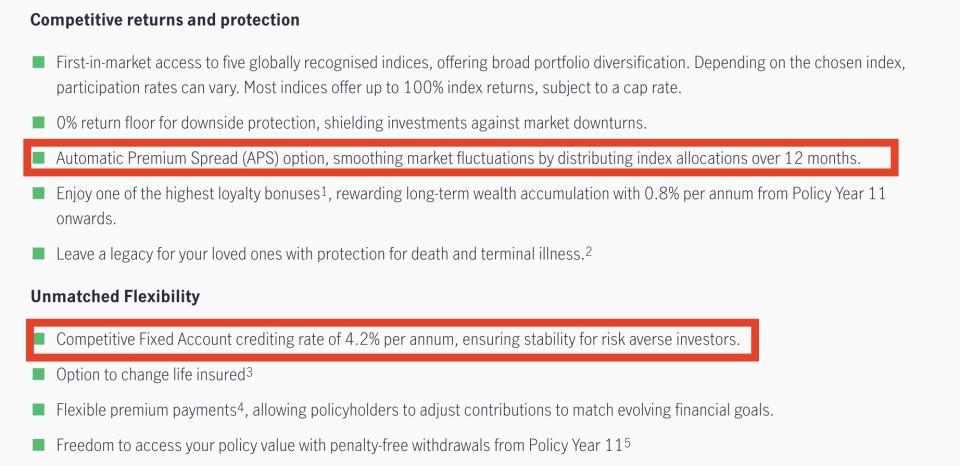 宏利新加坡自2019年在新加坡市场率先推出IUL产品,截至目前,该产品线已成为其在高端市场的核心竞争力之一。最新推出的Signature Indexed Universal Life Select(III)产品,首次在新加坡市场提供五大指数同步接入选项,包括标普500指数、S&P PRISM指数、S&P GSCI黄金超额回报指数、恒生指数以及欧洲斯托克50指数。这一产品设计使客户可在地域和资产类别上进行多元化配置,其中黄金相关指数的引入,为保单持有人提供了间接参与黄金市场的通道。