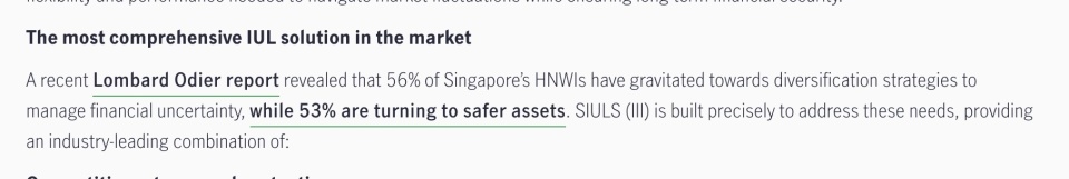 Lombard Odier近期调查数据显示,56%的新加坡高净值受访者正在寻求多元化配置策略以应对金融不确定性,53%倾向于向更安全的资产迁移。这一数据一定程度上解释了当前大额保单需求持续走高的市场逻辑。