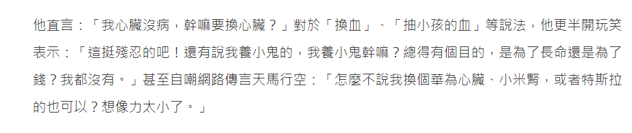 说着说着,他还不忘自嘲一番网络传言的荒诞不经:“咋不说我换个华为心脏、小米肾,或者特斯拉的也行呢?这想象力也太匮乏了。”