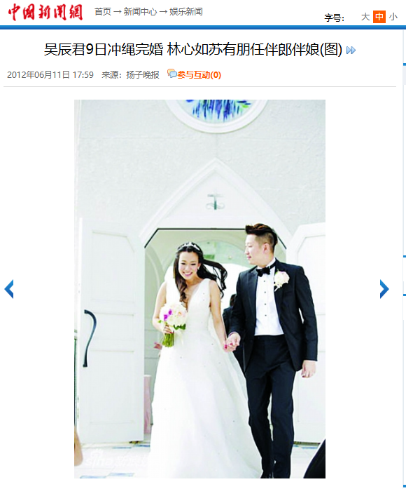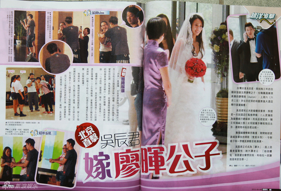 根据资料吴辰君2012年6月2日在北京举办了婚宴,6月中又去日本冲绳完婚,这也是廖怀南首度对外公开露面。