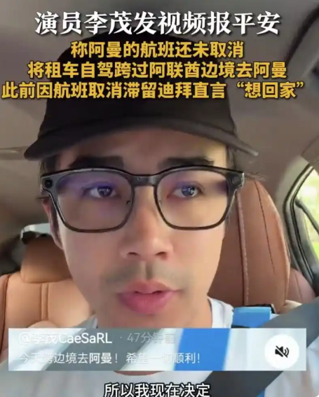 演员李茂与妻子弦子携9岁儿子在迪拜度假,因为阿联酋航空关闭,航班两次取消而滞留。