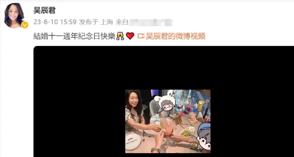 2023年吴辰君还发文庆祝结婚11周年纪念日。
