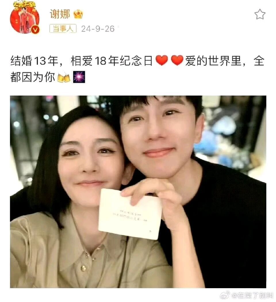 11年结婚,到24年是13年,按照谢娜的算法,06年9月他俩就恋爱了,有趣的是,那时张杰还没分手