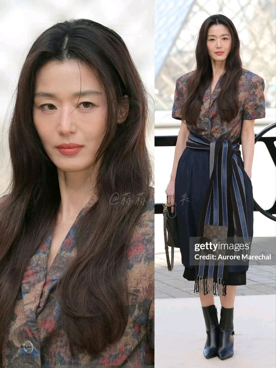在这次LV大秀上,全智贤的状态显得苍老憔悴,眼袋明显、面部松弛,再加上她穿的这套lv服饰颜色老气、样式繁琐,看起来真有种大妈既视感。