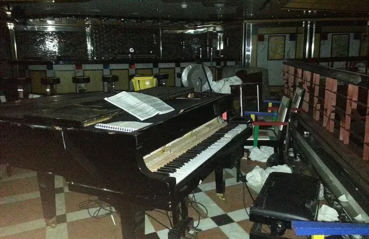 担心电力系统切断后电梯失灵,我上楼时没敢坐电梯,一口气跑到了九楼。层数越高,可以越明显地观测到船是否有倾斜,九楼还有一个外延的露天泳池,只要看一眼水面,就知道船是不是斜了。