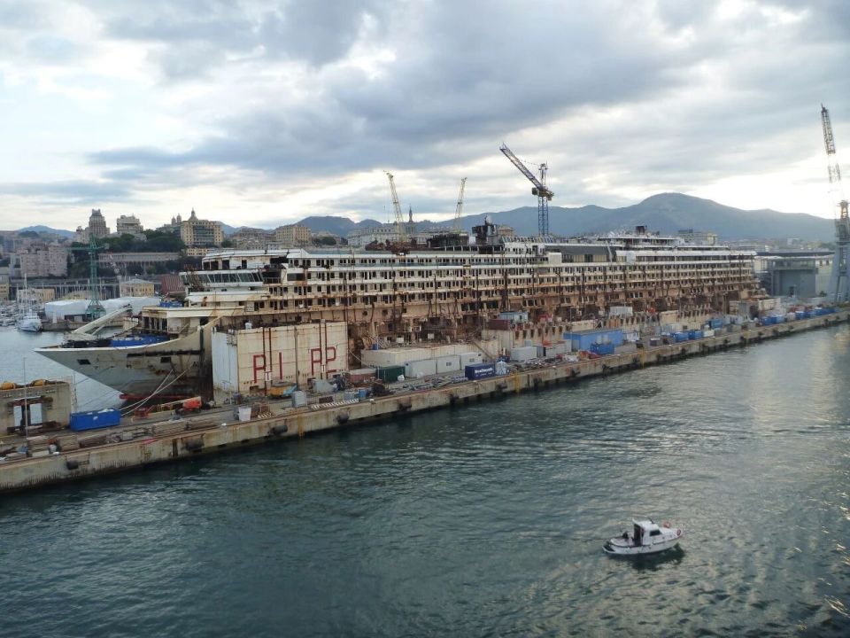 2015年9月12日,歌诗达协和号在码头被拆解