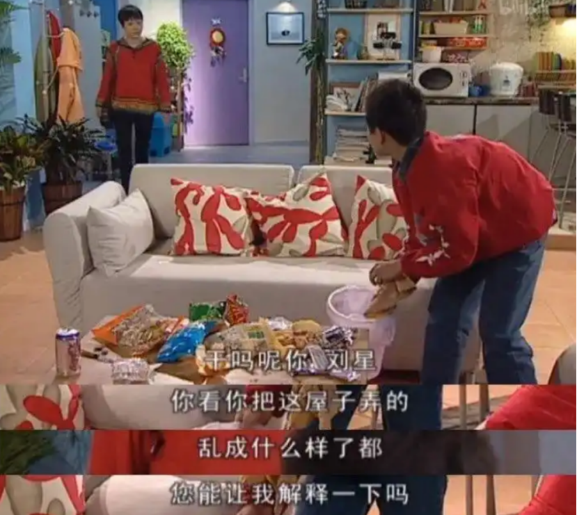 《家有儿女》中,刘星好心打算收拾脏乱茶几,却被妈妈默认是他弄乱的。(图/《家有儿女》)