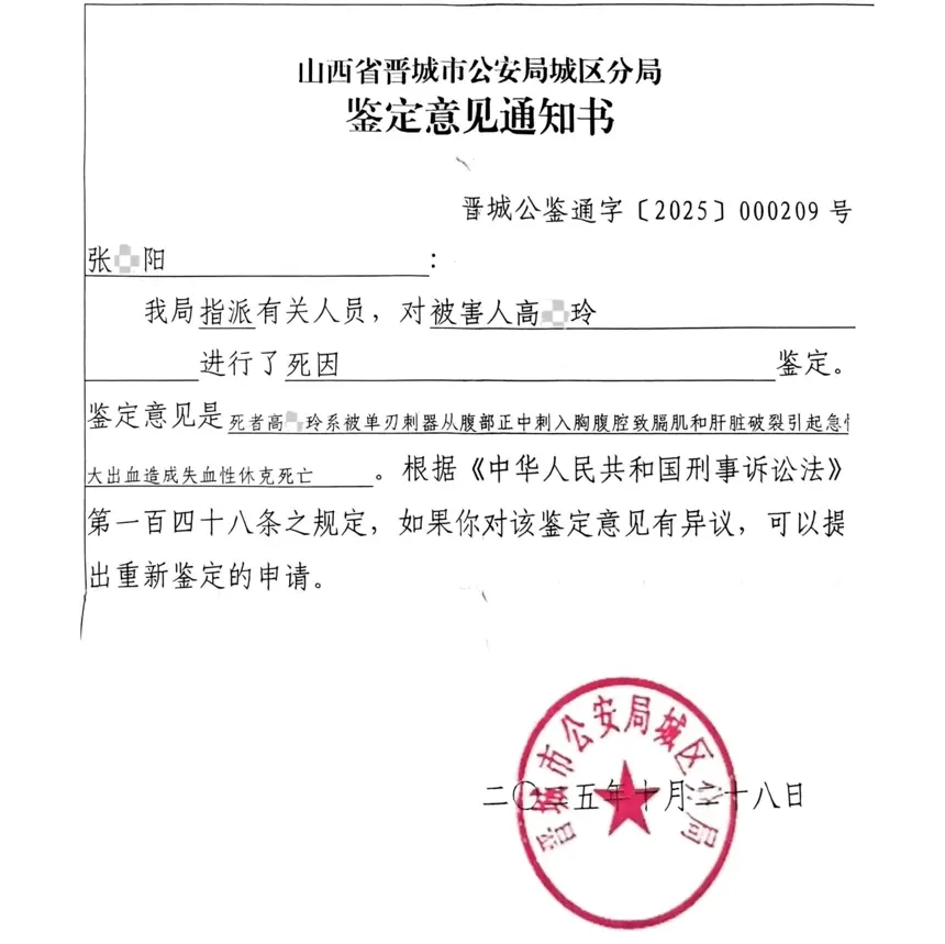 受害者家属提供的鉴定意见通知书