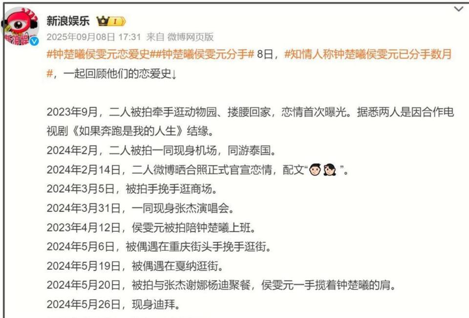 顺着这条线,大家又把目光转向了侯雯元的情史。?这哥们儿之前最出圈的恋情,是和钟楚曦啊!?想当年两人也是高调得很,2024年情人节还晒健身照官宣,那身材、那肌肉,被夸内娱最“牲口”的情侣