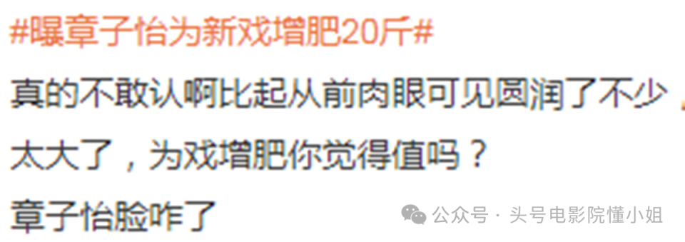 对于一个常年把体重控制在90斤左右的女演员来说,这几乎是把自己整个人“吹”大了一圈。