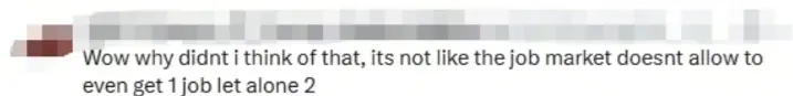 还有网民嘲讽说,“我怎么没想到这么做呢?可是我连一份工作都找不到,更别说再打一份工了。”