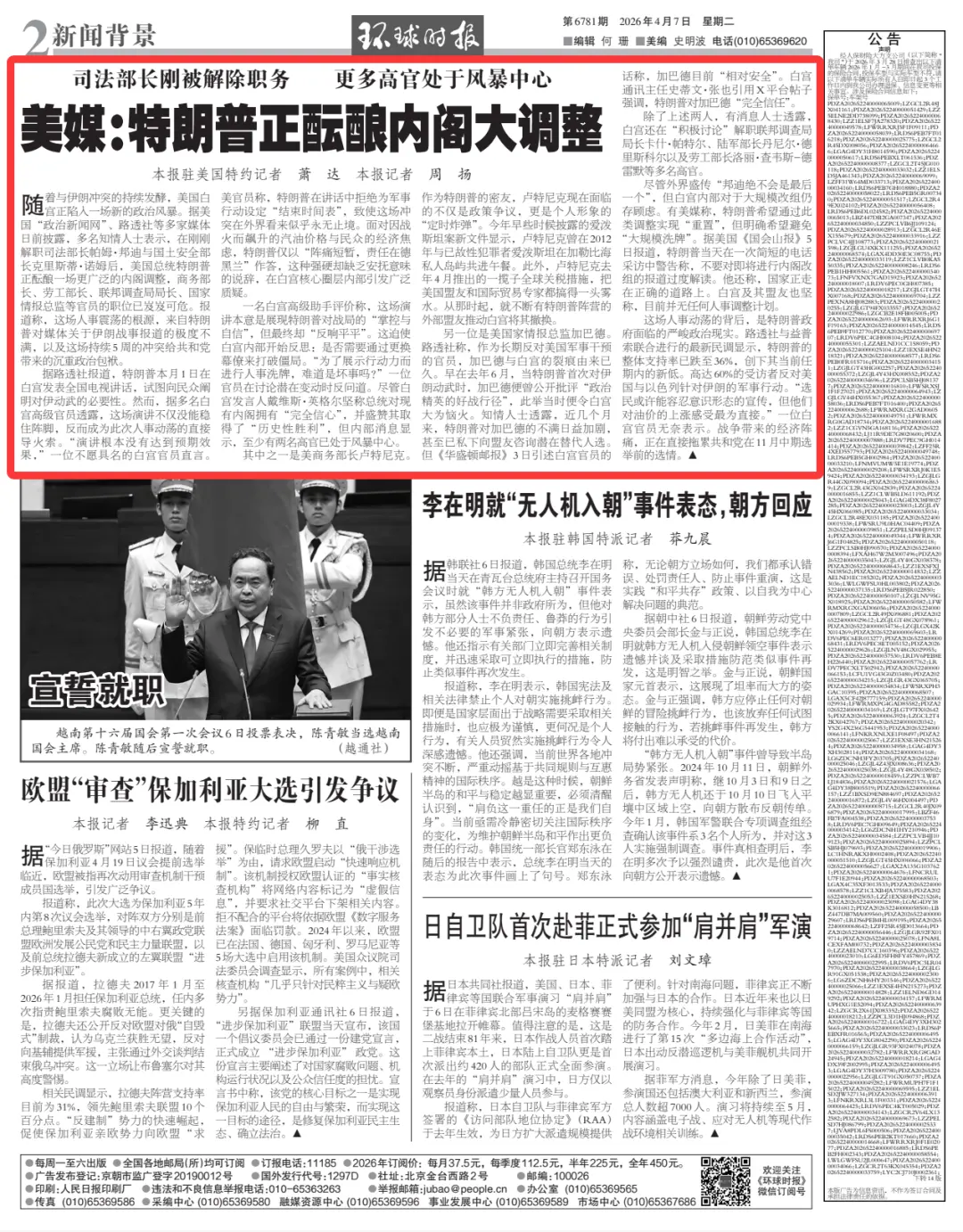 尽管外界盛传“邦迪绝不会是最后一个”,但白宫内部对于大规模改组仍存顾虑。有美媒称,特朗普希望通过此类调整实现“重置”,但明确希望避免“大规模洗牌”。据美国《国会山报》5日报道,特朗普当天在一次简短的电话采访中警告称,不要对即将进行内阁改组的报道过度解读。他还称,国家正走在正确的道路上。白宫及其盟友也坚称,目前并无任何人事调整计划。