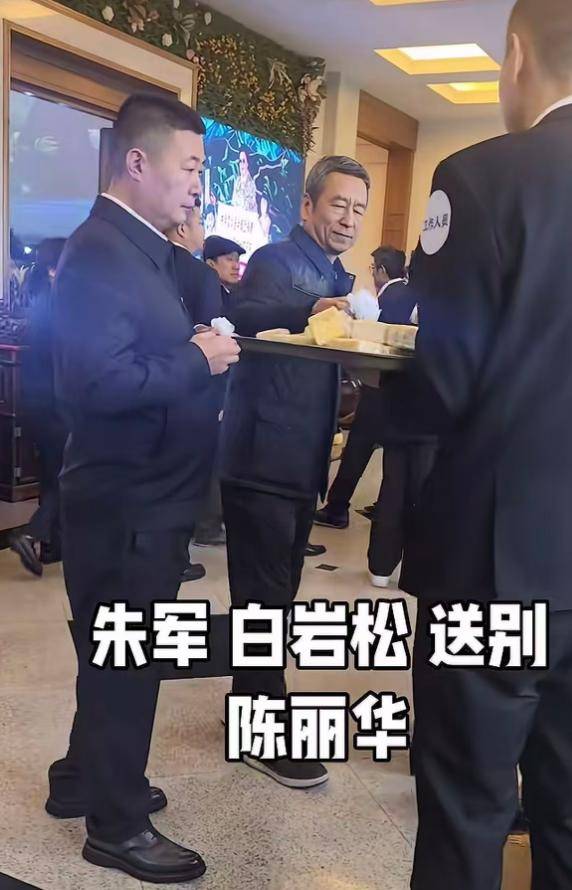 除此之外,主持人朱军、白岩松也来送别陈丽华了,两人身穿黑衣,表情哀伤。