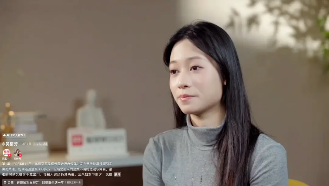 回想起来,吴柳芳的视频内容因被另一名体操运动员管晨辰指责“擦边”,继而引发大规模网暴、账号被封、粉丝被清空,已经是一年半以前的事了。如今,她总算无债一身轻,翻开了新的一页。祝福她。