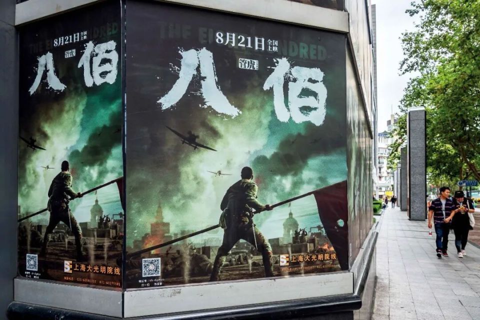 2020年9月,上海街头的电影《八佰》海报。图/视觉中国